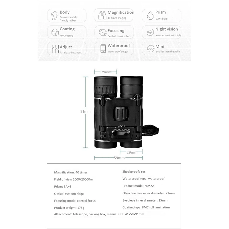40X22 Mini Binocular Professional Binoculars Telescope for Travel Concert Outdoor Sports Hunting Hi