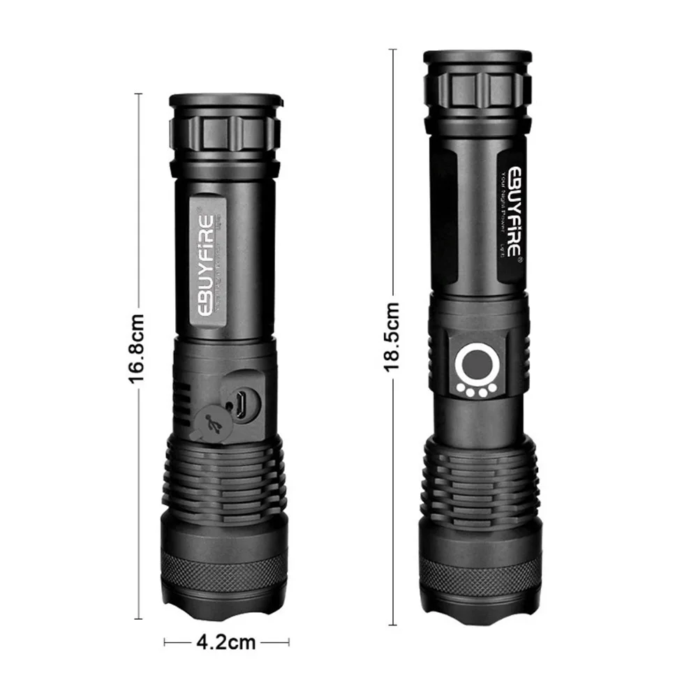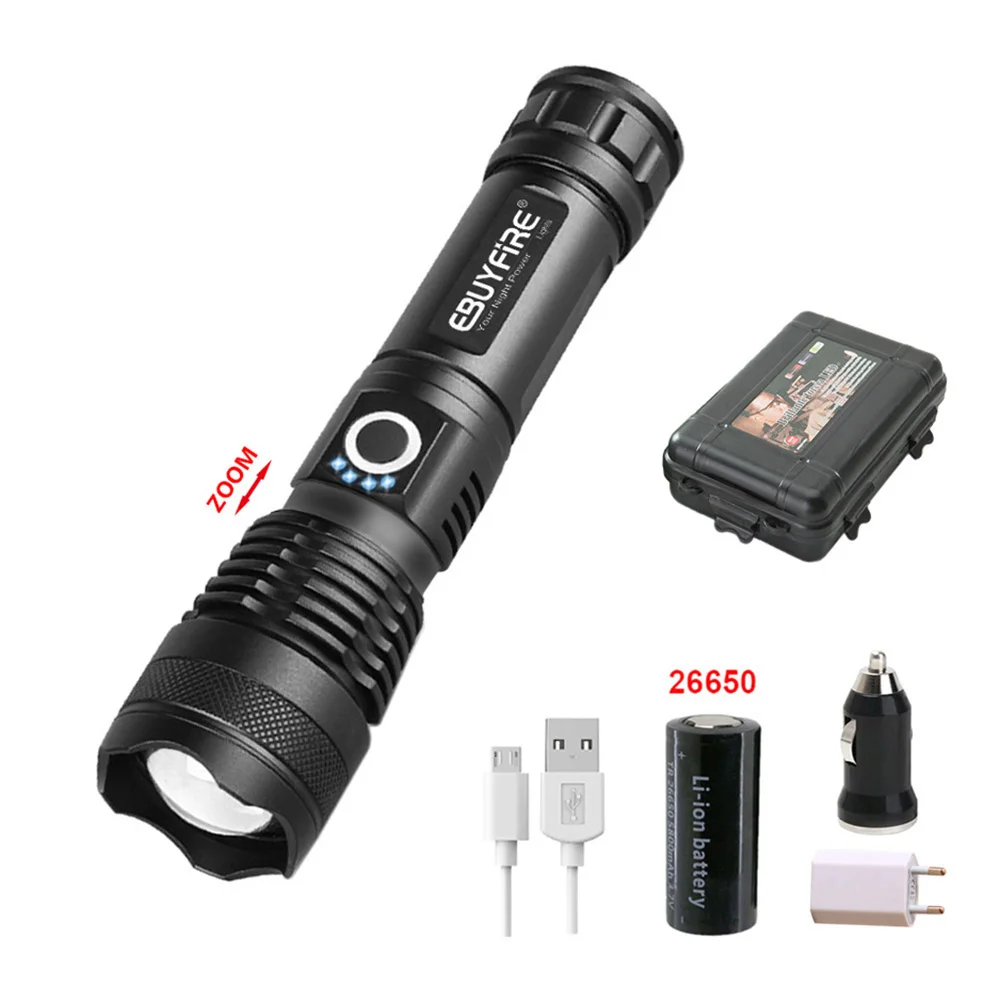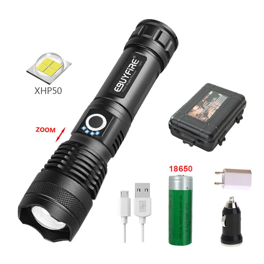 LED Powerful Flashlight XHP50 linterna USB Rechargeable torch 30000 lumens 18650/26650 battery Zoom