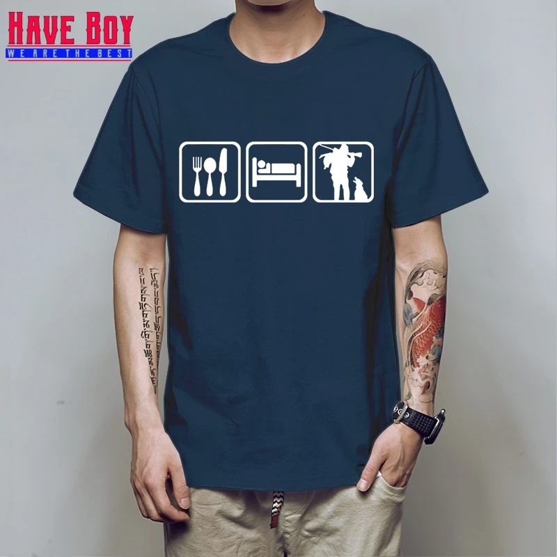 HAVE BOY New Funny Eat Sleep Hunt tee Men's Spring Autumn Fashion t shirt Casual Cotton Thicken Fle