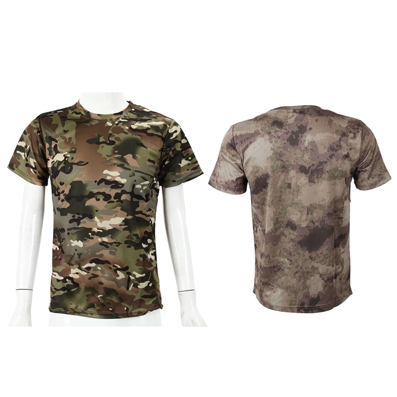 ELOS-2 Pcs New Outdoor Hunting Camouflage T-Shirt Men Breathable Army Combat T Shirt Dry Sport Camo