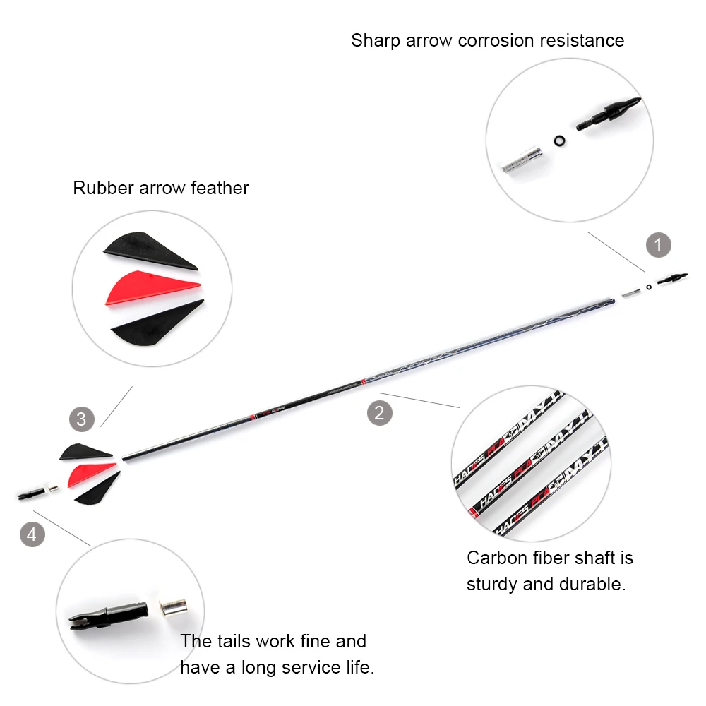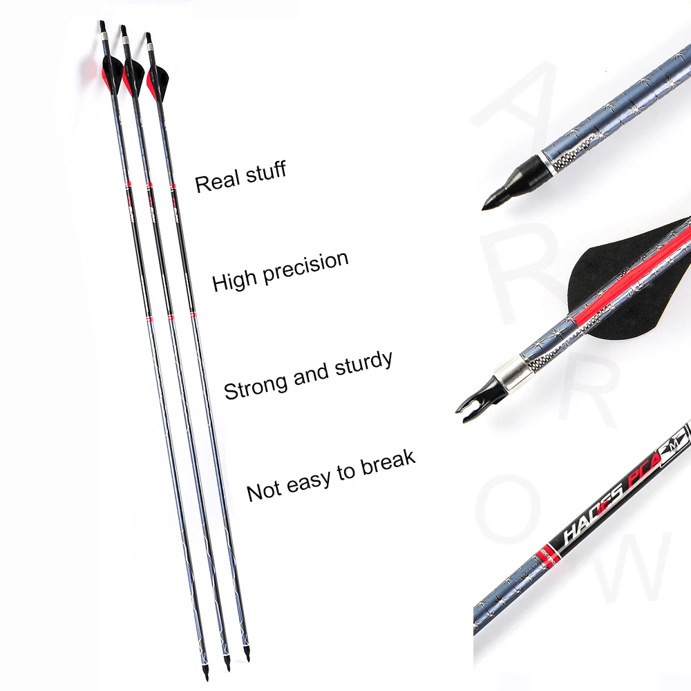 30 Inches Mixed Carbon Arrows Spine 550 with Explosion-proof Replaceable head for Recurve/Compound